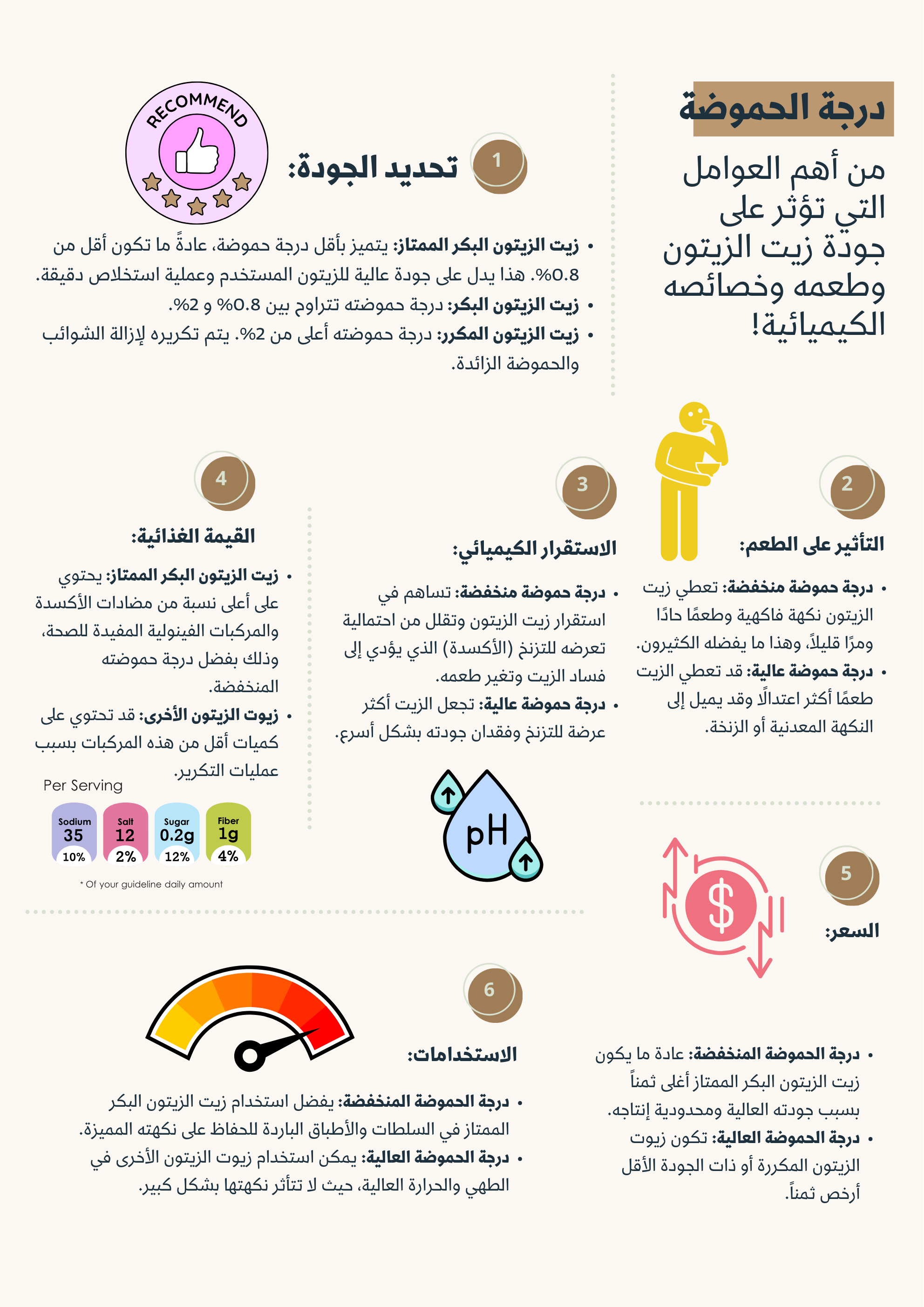 درجة الحموضة وتأثيرها على زيت الزيتون
